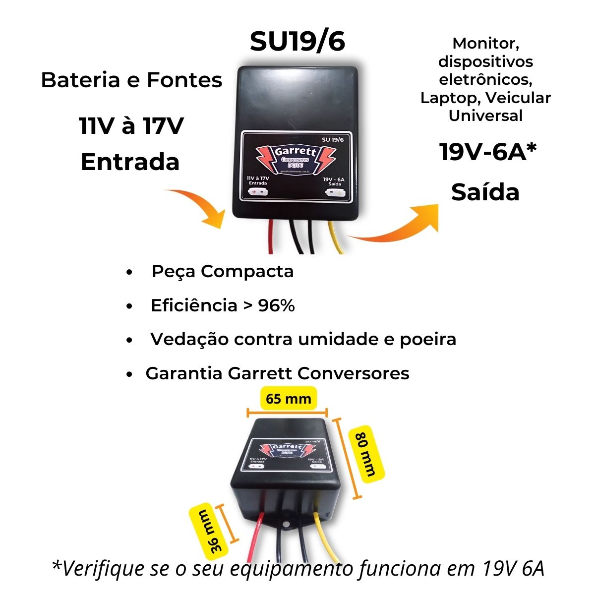 Conversor/Regulador de Tensão – Entrada 11V à 17V – Saída 19V-6A – SU19/6